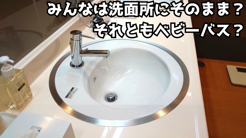 ・ベビーバスを買わずに洗面台にお湯を張って洗う人も多いとか。こけしの家の洗面台はやりづらそうだったのでベビーバス買いました。