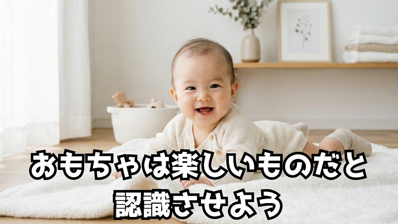 赤ちゃんは、一緒にいる大人の表情や声のトーンをよく見ているので、楽しそうにして「おもちゃ遊び=楽しいこと」と思わせるのがとても大事です。