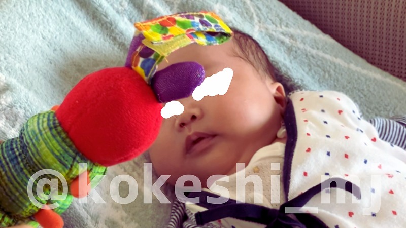まだ表情も少なく、楽しんでいるかは謎ながら、なるべく視覚や聴覚を刺激してあげていました。