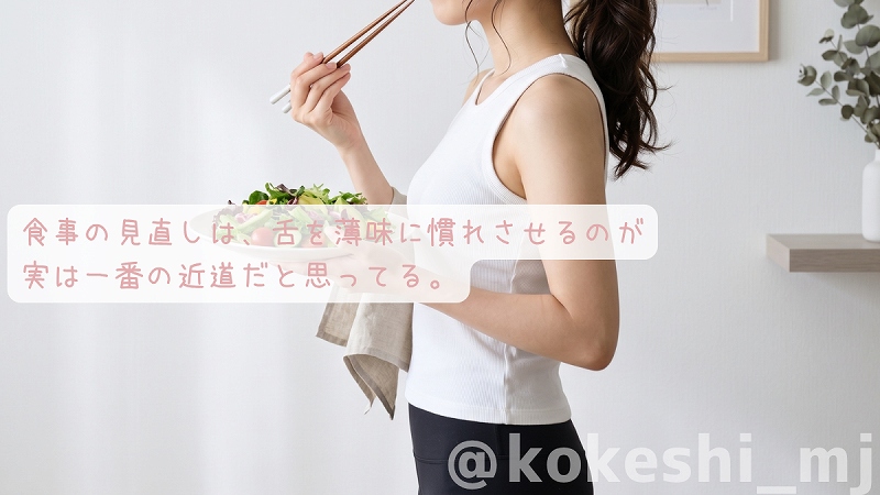 最近だと土日に夫と手抜きで出前を楽しむこともありますが、自炊の方が、味付けは自然と薄味になります。薄味の物を食べ続けていると、舌も薄味のもので満足するようになります。